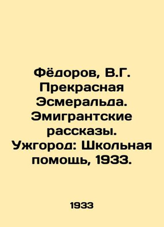 Fyodorov, V.G. The Beautiful Esmeralda. Expatriate Stories. Uzhgorod: School Aid, 1933./Fyodorov, V.G. Prekrasnaya Esmeralda. Emigrantskie rasskazy. Uzhgorod: Shkolnaya pomoshch, 1933. Fyodorov, V.G. The Beautiful Esmeralda. Expatriate Stories. Uzhgorod: School Aid, 1933. We have thousands of titles and often several copies of each title may be available. Please feel free to contact us for a detailed description of the copies available. SKUbd-4b54cb7f10cfc10d.