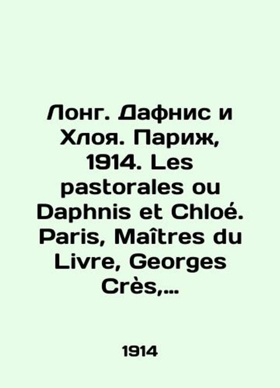 Long. Daphnis and Chloe. Paris, 1914. Les pastorales ou Daphnis et Chloe. Paris, Maitres du Livre, Georges Cres, 1914/Long. Dafnis i Khloya. Parizh, 1914. Les pastorales ou Daphnis et Chloe. Paris, Maitres du Livre, Georges Cres, 1914 Long. Daphnis and Chloe. Paris, 1914. Les pastorales ou Daphnis et Chloe. Paris, Maitres du Livre, Georges Cres, 1914.We have thousands of titles and often several copies of each title may be available. Please feel free to contact us for a detailed description of the copies available. SKUbd-4bad5f27911eb255.