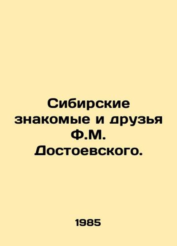 F.M. Dostoyevskys Siberian acquaintances and friends./Sibirskie znakomye i druzya F.M. Dostoevskogo. Novosibirsk Science 1985. 168We have thousands of titles and often several copies of each title may be available. Please feel free to contact us for a detailed description of the copies available. SKUbd-4bb6d03eac288315.