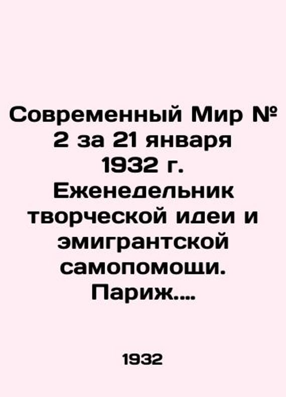 "The Modern World # 2 for January 21, 1932. Weekly of Creative Ideas and Expatriate Self-Help. Paris. 1932.-16 p.; 32x24 sm./Sovremennyy Mir # 2 za 21 yanvarya 1932 g. Ezhenedelnik tvorcheskoy idei i emigrantskoy samopomoshchi. Parizh. 1932.-16 s.; 32x24 sm. The Modern World # 2 for January 21, 1932. Weekly of Creative Ideas and Expatriate Self-Help. Paris. 1932.-16.We have thousands of titles and often several copies of each title may be available. Please feel free to contact us for a detailed description of the copies available. SKUbd-4c7e132ba223fc34."