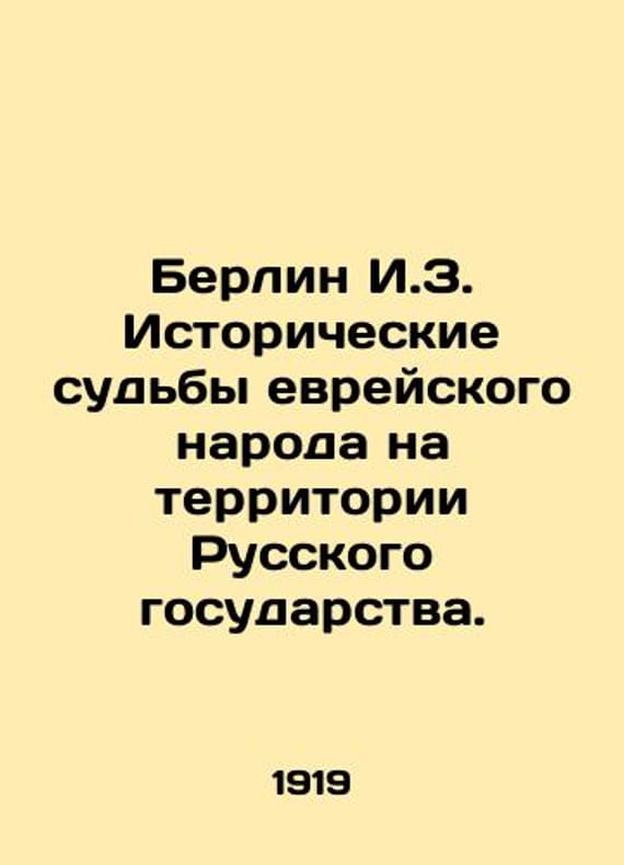 Berlin I.Z. Historical fates of the Jewish people in the territory of the Russian state./Berlin I.Z. Istoricheskie sudby evreyskogo naroda na territorii Russkogo gosudarstva. Berlin I.Z. Historical fates of the Jewish people in the territory of the Russian state. We have thousands of titles and often several copies of each title may be available. Please feel free to contact us for a detailed description of the copies available. SKUbd-4d7ea28208ad8cfa.