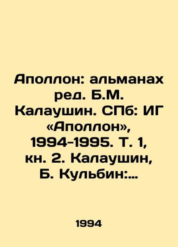 Apollo: almanac edited by B.M. Kalaushin. SPb: IG Apollo, 1994-1995. Vol. 1, book 2. Kalaushin, B. Kulbin: documents 558 p., figure 2, book 1. Kalaushin, B. Burlyuk: father of Russian futurism./Apollon: almanakh red. B.M. Kalaushin. SPb: IG «Apollon, 1994-1995. T. 1, kn. 2. Kalaushin, B. Kulbin: dokumenty. 558 s., il. T. 2, kn. 1. Kalaushin, B. Burlyuk: otets russkogo futurizma. Apollo: almanac edited by B.M. Kalaushin. SPb: IG Apollo, 1994-1995. Vol. 1, book 2. Kalaushin, B. Kulbin: documents 558 p., figure 2, book 1. Kalaushin, B. Burlyuk: father of Russian futurism. 800 p. We have thousands of titles and often several copies of each title may be available. Please feel free to contact us for a detailed description of the copies available. SKUbd-4e73056e52fa1868.