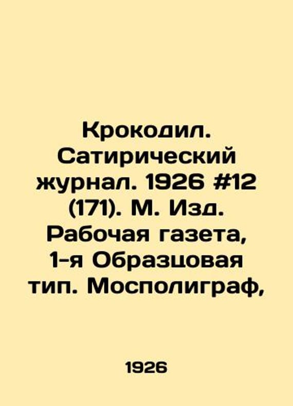 Crocodile. Satirical magazine. 1926 # 12 (171). M. Publishing House. Rabochnaya Gazeta, 1st Model Type. Mospolygraph,/Krokodil. Satiricheskiy zhurnal. 1926 #12 (171). M. Izd. Rabochaya gazeta, 1-ya Obraztsovaya tip. Mospoligraf, Crocodile. Satirical magazine. 1926 # 12 (171). M. Publishing House. Rabochnaya Gazeta, 1st Model Type. Mospolygraph, 12 pp., shooting range 175000, 27,5x36,5 sm. We have thousands of titles and often several copies of each title may be available. Please feel free to contact us for a detailed description of the copies available. SKUbd-4e993a704aa45107.