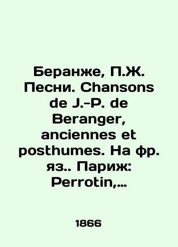 Beranger, J. Songs. Chansons de J.- de Beranger, anciennes et posthumes. Paris: Perrotin, 1866. 1 l./Beranzhe, Zh. Pesni. Chansons de J.- de Beranger, anciennes et posthumes. Na fr. yaz. Parizh: Perrotin, 1866. 1 l. Beranger, J. Songs. Chansons de J.- de Beranger, anciennes et posthumes. Paris: Perrotin, 1866. 1 l. We have thousands of titles and often several copies of each title may be available. Please feel free to contact us for a detailed description of the copies available. SKUbd-4ec33850a59b9ebc.