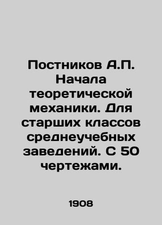 Postnikov A.P. Begins theoretical mechanics. For high school students. With 50 drawings./Postnikov A.P. Nachala teoreticheskoy mekhaniki. Dlya starshikh klassov sredneuchebnykh zavedeniy. S 50 chertezhami. Postnikov A.P. Begins theoretical mechanics. For high school students. With 50 drawings. Moscow: Publisher V.S. Spiridonov, 1908. 95 p. We have thousands of titles and often several copies of each title may be available. Please feel free to contact us for a detailed description of the copies available. SKUbd-4fb8d3e0eea546f0.