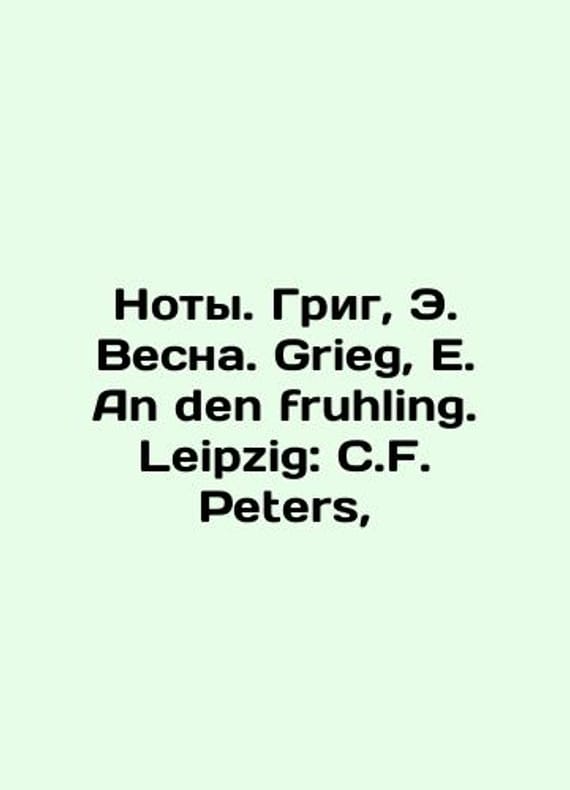 Notes. Grieg, E. Spring. Grieg, E. An den fruhling. Leipzig: C.F. Peters,/Noty. Grig, E. Vesna. Grieg, E. An den fruhling. Leipzig: C.F. Peters, Notes. Grieg, E. Spring. Grieg, E. An den fruhling. Leipzig: C.F. Peters,. We have thousands of titles and often several copies of each title may be available. Please feel free to contact us for a detailed description of the copies available. The delivery of this book might be delayed beyond the usual timeframe due to extended processing and preparation before shipment, and faster shipping options are not offered. Please inform us if you need the order by a certain date or have a deadline.SKUbd-509a5722627a20a1