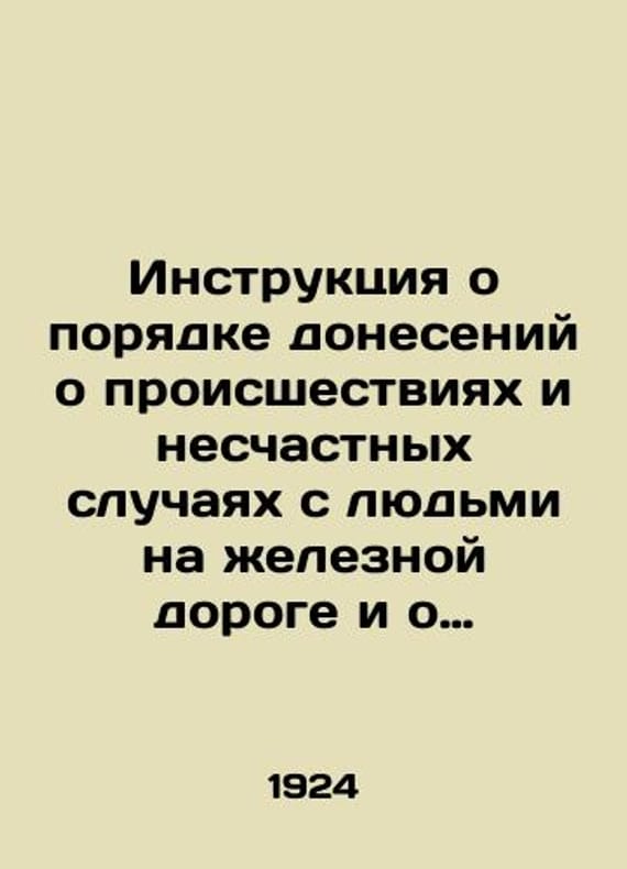 Instructions on how to report and investigate railway accidents and accidents, as appropriate to local conditions. 1924./Instruktsiya o poryadke doneseniy o proisshestviyakh i neschastnykh sluchayakh s lyudmi na zheleznoy doroge i o proizvodstve rassledovaniy po nim, primenitelno k mestnym usloviyam. 1924. The Peoples Commissariat of Railways. Samara-Zlatous Railway. Instructions on the procedure for reporting incidents and accidents involving people on the railway and for conducting investigations into them, in accordance with local conditions. Samara. Typo-litogr. # 2 of the Polygraph Industry. 1924-115 p., Table 17 see.We have thousands of titles and often several copies of each title may be available. Please feel free to contact us for a detailed description of the copies available. SKUbd-d6c8123d64ae4d92.