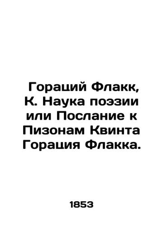Horace Flacca, K. The Science of Poetry or the Message to the Pisons of Quinta Horace Flacca./ Goratsiy Flakk, K. Nauka poezii ili Poslanie k Pizonam Kvinta Goratsiya Flakka. A Convolutee from the Works of Quinta Horace Flacco in Translations by M. Dmitriev. 1850s 1. Horace Flack, K. The Science of Poetry or Message to the Pisons of Quinta Horace Flacco. With the attachment of the original, an introduction and notes to explain the original and the translation by M. Dmitriev. M.: Type. Alexander Semyon, 1853. VIII, 90 p. 2. Satire of Quinta Horace Flacco with lat. Translation in Verses by M. Dmitriev with explanatory notes. M.: Type. V. Gautier, 1858. XII, 192, 4 p. 23.5 - 16 see. We have thousands of titles and often several copies of each title may be available. Please feel free to contact us for a detailed description of the copies available. SKUbd-533354796e296205.