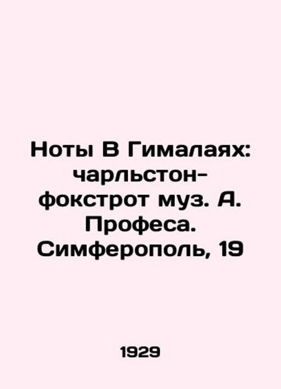 In the Himalayas: Charleston Foxtrot by A. Profesa. Simferopol, 19/Noty V Gimalayakh: charlston-fokstrot muz. A. Profesa. Simferopol, 19 In the Himalayas: Charleston Foxtrot by A. Profesa. Simferopol, 1929. 4 p. (incl. Region). 35 - 26 sm. We have thousands of titles and often several copies of each title may be available. Please feel free to contact us for a detailed description of the copies available. SKUbd-53884703c0f9e10f.