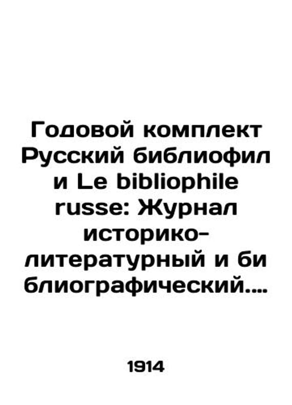 Annual set of Russian bibliophile and Le bibliophile russe: Journal of Historical-Literary and Bibliographic. Vol. 1-8 for 1914/Godovoy komplekt Russkiy bibliofil i Le bibliophile russe: Zhurnal istoriko-literaturnyy i bibliograficheskiy. Vyp. 1-8 za 1914 g. Annual set of Russian bibliophile and Le bibliophile russe: Journal of Historical-Literary and Bibliographic. Issue 1-8 for 1914, St. Petersburg: Type Sirius, 1914.- # 1 (January). 125, 3, 64, II p., 12 il., fax: Issue # 2 (February). 120, 2, 33-48 p., 12 il., fax: Issue # 3 (March). 115, 1, 49-64 p., 8 il., fax: Issue # 4 (April). 139, 1, 65-87, 1 p., 12 il., fax: Issue # 5 (September). 88, 4, 32 p., 7 il., fax: Issue # 6 (October). 77, 1, II, 2, 33-80, II p., 7 il. We have thousands of titles and often several copies of each title may be available. Please feel free to contact us for a detailed description of the copies available. SKUbd-53dd147e5525f6d8.