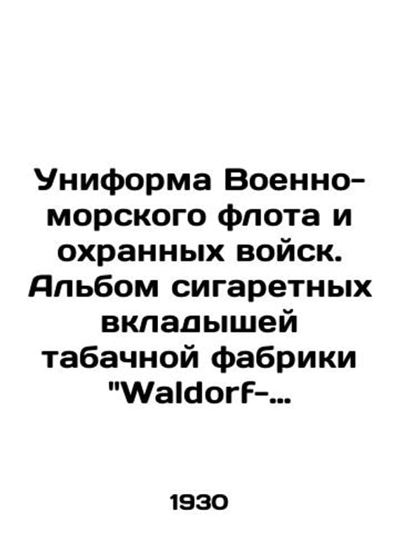 Navy and Guard uniforms. Album of cigarette liners from the Waldorf-Astoria tobacco factory. Uniformen der marine und schutztruppen. Munchen: Waldorf-Astoria, 1930./Uniforma Voenno-morskogo flota i okhrannykh voysk. Albom sigaretnykh vkladyshey tabachnoy fabriki Waldorf-Astoria. Uniformen der marine und schutztruppen. Munchen: Waldorf-Astoria, 1930. Navy and Guard uniforms. Album of cigarette liners from the Waldorf-Astoria tobacco factory. Uniformen der marine und schutztruppen. Munchen: Waldorf-Astoria, 1930. We have thousands of titles and often several copies of each title may be available. Please feel free to contact us for a detailed description of the copies available. SKUbd-540e65f3bfda7c1.