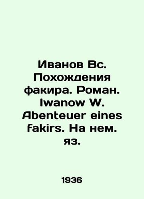 Ivanov Sun. The Adventures of Fakir. Roman. Iwanow W. Abenteuer eines fakirs. In German./Ivanov Vs. Pokhozhdeniya fakira. Roman. Iwanow W. Abenteuer eines fakirs. Na nem. yaz. Ivanov Sun. The Adventures of Fakir. Roman. Iwanow W. Abenteuer eines fakirs. In German: Verlagsgenossenschaft auslandischer arbe iter in der UdSSR, 1936. We have thousands of titles and often several copies of each title may be available. Please feel free to contact us for a detailed description of the copies available. SKUbd-5470bb3ce5f76346.