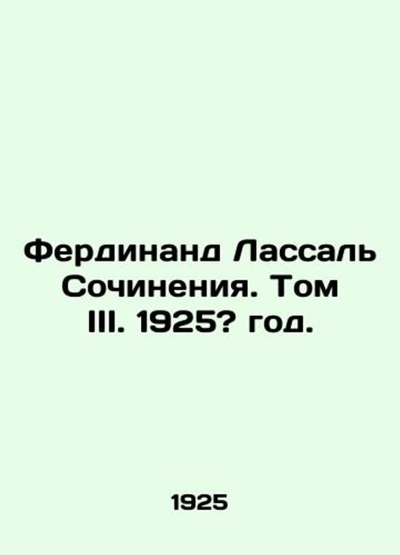 Ferdinand Lassal Works. Volume III. 1925? year./Ferdinand Lassal Sochineniya. Tom III. 1925? god. CRUG Publishing House. 1st Model Printing House of Gosizdat. Moscow, 1925? Ferdinand Lassal (1825-1864) is a German philosopher, lawyer, economist, and politician. We have thousands of titles and often several copies of each title may be available. Please feel free to contact us for a detailed description of the copies available. SKUbd-54a4d0b6056f903e.