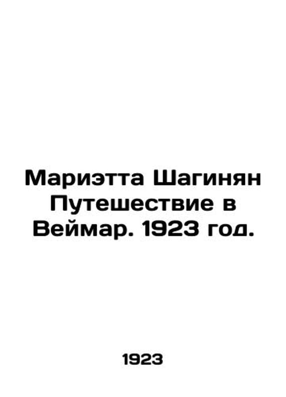 Marietta Shahinyans Journey to Weimar. 1923./Marietta Shaginyan Puteshestvie v Veymar. 1923 god. State Publishing House. Ivan Fedorov Trust Petroprinting, Moscow-Petrograd, 1923. Marietta Sergeevna Shahinyan (1888-1982) is a Soviet writer and poet of Armenian origin. We have thousands of titles and often several copies of each title may be available. Please feel free to contact us for a detailed description of the copies available. SKUbd-5523cf52c1ca8f81.
