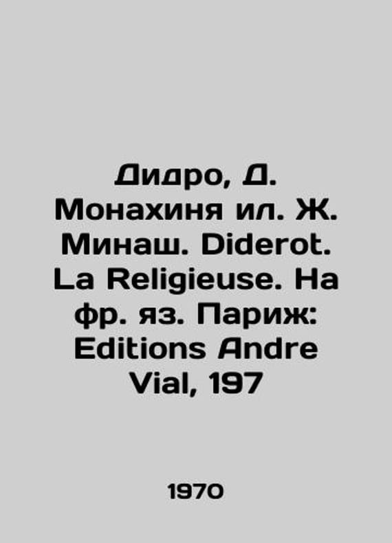 Diderot, D. Nun, J. Minash. Diderot. La Religieuse. Paris: Editions by Andre Vial, 197/Didro, D. Monakhinya il. Zh. Minash. Diderot. La Religieuse. Na fr. yaz. Parizh: Editions Andre Vial, 197 Diderot, D. Nun, J. Minash. Diderot. La Religieuse. Paris: Editions by Andre Vial, 1970. 196, 6 p., 14 l. 25 - 19 sm. We have thousands of titles and often several copies of each title may be available. Please feel free to contact us for a detailed description of the copies available. SKUbd-55792520ce0a64cb.