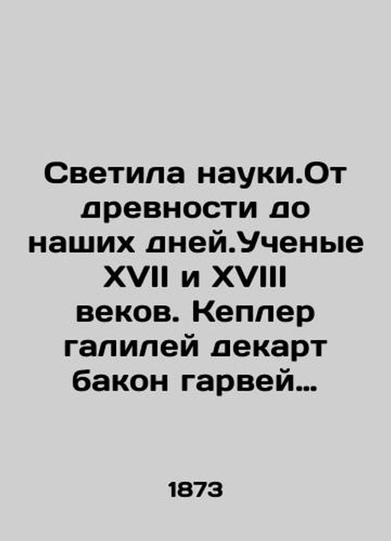 The luminaries of science. From antiquity to the present day. Scientists of the seventeenth and eighteenth centuries. Kepler Galileo Descartes Bacon Harvay Huygens Pascal Newton. M. O. Wolf. 1873. 504 2 p. 12 l/Svetila nauki.Ot drevnosti do nashikh dney.Uchenye XVII i XVIII vekov. Kepler galiley dekart bakon garvey gyuygens paskaot nyuton. M.O. Volf. 1873. 504 2 s. 12 l. il. The luminaries of science. From antiquity to the present day. Scientists of the seventeenth and eighteenth centuries. Kepler Galileo Descartes Bacon Harvay Huygens Pascal Newton. M. O. Wolf. 1873. 504 2 p. 12 l. We have thousands of titles and often several copies of each title may be available. Please feel free to contact us for a detailed description of the copies available. SKUbd-558b771aa4b04752.