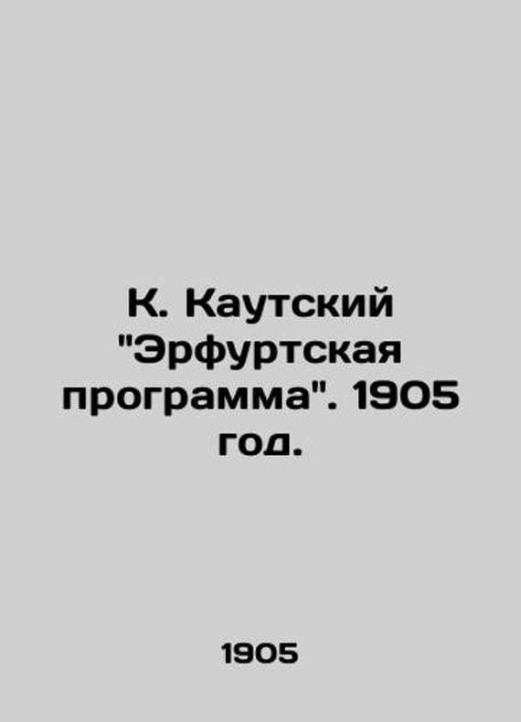 K. Kautskys Erfurt Program. 1905./K. Kautskiy Erfurtskaya programma. 1905 god. The Erfurt Program, the first and only program of the Social Democratic Party of Germany, written from the Marxist positions of K. Kautsky (theoretical part) and E. Bernstein (practical part), and adopted at the Congress in Erfurt in 1891, replaced the Gotha Program, adopted in 1875, which included lassallian theoretical influences. We have thousands of titles and often several copies of each title may be available. Please feel free to contact us for a detailed description of the copies available. SKUbd-dfbf0ecf281eefdb.