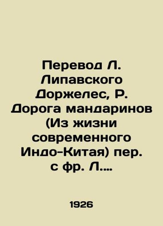 "Translation of L. Lipavskys Dorgels, R. The Road of Mandarin (From the Life of Modern Indo-China) from L. Savelievs Pseudo-Russian, S.A. Kupriyanova Region./Perevod L. Lipavskogo Dorzheles, R. Doroga mandarinov (Iz zhizni sovremennogo Indo-Kitaya) per. s fr. L. Saveleva psevd., obl. S.A. Kupriyanovoy. Translation of L. Lipavskys Dorjels, R. The Road of Mandarin (From the Life of Modern Indo-China) from L. Savelievs Pseudo-Russian, Kupriyanova Region. M.; L.: Book, 1926. We have thousands of titles and often several copies of each title may be available. Please feel free to contact us for a detailed description of the copies available. SKUbd-56e8d13cd263926c."
