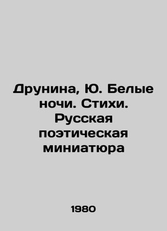 Drunina, Yu. White Nights. Poems. Russian poetic miniature/Drunina, Yu. Belye nochi. Stikhi. Russkaya poeticheskaya miniatyura Drunina, Yu. White Nights. Poems. Russian poetic miniature. Perm.: 1980, -166 10.We have thousands of titles and often several copies of each title may be available. Please feel free to contact us for a detailed description of the copies available. SKUbd-57a0a5b0555c7e45.