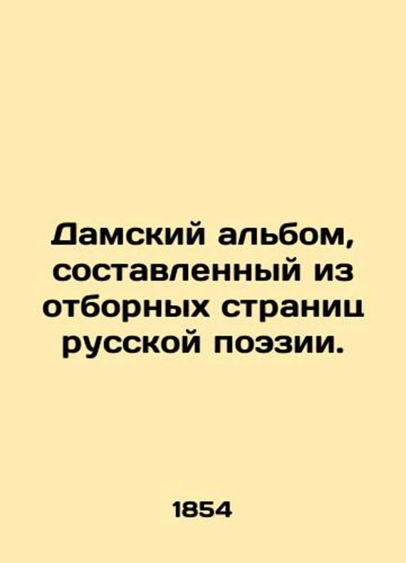 A ladies album composed of selected pages of Russian poetry. /Damskiy albom, sostavlennyy iz otbornykh stranits russkoy poezii. A ladies album composed of selected pages of Russian poetry. We have thousands of titles and often several copies of each title may be available. Please feel free to contact us for a detailed description of the copies available. The delivery of this book might be delayed beyond the usual timeframe due to extended processing and preparation before shipment, and faster shipping options are not offered. Please inform us if you need the order by a certain date or have a deadline.SKUbd-5804577a8934b520