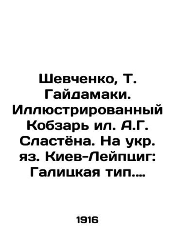 "Shevchenko, T. Gaidamaki. Illustrated by A.G. Slastyon Kobzar. In Ukrainian. Kyiv-Leipzig: Galician type. Kolomia; Ukrainian Publishing Winnipeg Man, 191/Shevchenko, T. Gaydamaki. Illyustrirovannyy Kobzar il. A.G. Slastyona. Na ukr. yaz. Kiev-Leyptsig: Galitskaya tip. Kolomiya; Ukrainian Publiching Winnipeg Man, 191 Shevchenko, T. Gaidamaki. Illustrated by A.G. Slastyon Kobzar. In Ukrainian, Kyiv-Leipzig: Galician type. Kolomia; Ukrainian Publishing Winnipeg Man, 1916. 50 p., 13 l.: 43.5 - 33.5 sm. We have thousands of titles and often several copies of each title may be available. Please feel free to contact us for a detailed description of the copies available. The delivery of this book might be delayed beyond the usual timeframe due to extended processing and preparation before shipment, and faster shipping options are not offered. Please inform us if you need the order by a certain date or have a deadline.SKUbd-59289c8d340f2349"