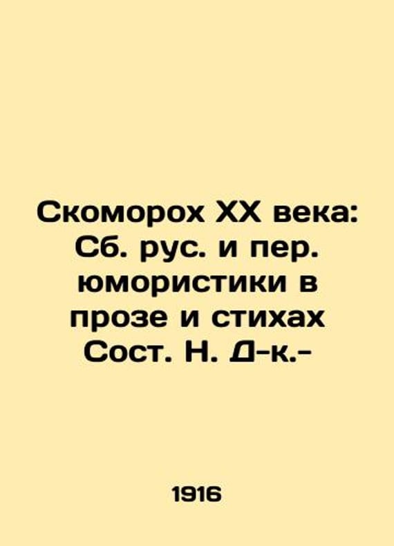 "The Scarecrow of the XX Century: Russian and Translated Humor in Prose and Poems by St. N. D-k.-/Skomorokh XX veka: Sb. rus. i per. yumoristiki v proze i stikhakh Sost. N. D-k.- Skomorokh of the XX century: Sb. Russian and N. D. -M.: type. Vilde, 1916.-318, II p.; 18.2x12.5 sm. We have thousands of titles and often several copies of each title may be available. Please feel free to contact us for a detailed description of the copies available. SKUbd-593aebfa3535e38c."