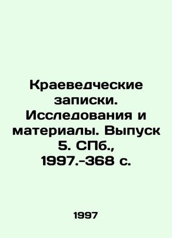 Local Studies Memoranda. Research and Materials. Issue 5. St. Petersburg, 1997, -368 p./Kraevedcheskie zapiski. Issledovaniya i materialy. Vypusk 5. S.Pb. 1997.-368 s. The compendium was prepared in cooperation with the Committee for State Control, Use and Protection of Historical and Cultural Monuments of the St. Petersburg Administration. It includes studies and materials devoted to the history of St. Petersburg architecture and the problems of monument protection. We have thousands of titles and often several copies of each title may be available. Please feel free to contact us for a detailed description of the copies available. SKUbd-5947ab1c930f29ec.
