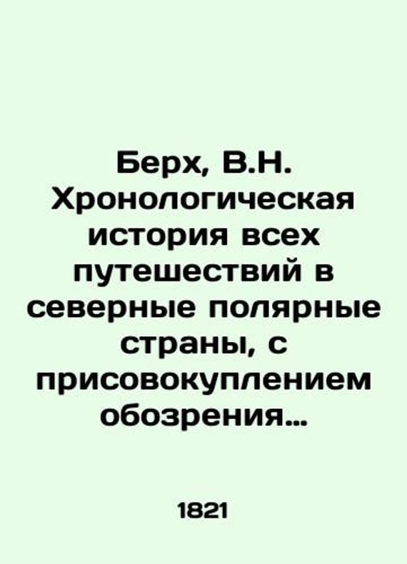 Berch, V.N. A chronological history of all journeys to the northern polar countries, with the addition of a survey of the physical properties of that region/Berkh, V.N. Khronologicheskaya istoriya vsekh puteshestviy v severnye polyarnye strany, s prisovokupleniem obozreniya fizicheskikh svoystv togo kraya. V 2 ch. Ch. 1. Berkh, V.N. A chronological history of all journeys to the northern polar countries, with the addition of an overview of the physical properties of that region.We have thousands of titles and often several copies of each title may be available. Please feel free to contact us for a detailed description of the copies available. SKUbd-59dbd1363b0c9ffe.
