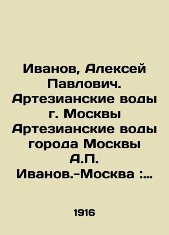 "Ivanov, Alexey Pavlovich. Artesian Waters of Moscow, Artesian Waters of Moscow, A. Ivanov-Moscow: Mountain type, 1916.-32 p.; 26x18 sm./Ivanov, Aleksey Pavlovich. Artezianskie vody g. Moskvy Artezianskie vody goroda Moskvy A. Ivanov.-Moskva: Gor. tip., 1916.-32 s.; 26x18 sm. Ivanov, Alexey Pavlovich. Artesian Waters of Moscow, Artesian Waters of Moscow, A. Ivanov-Moscow: Mountain type., 1916.-32.We have thousands of titles and often several copies of each title may be available. Please feel free to contact us for a detailed description of the copies available. SKUbd-5a369c1714ab0529."