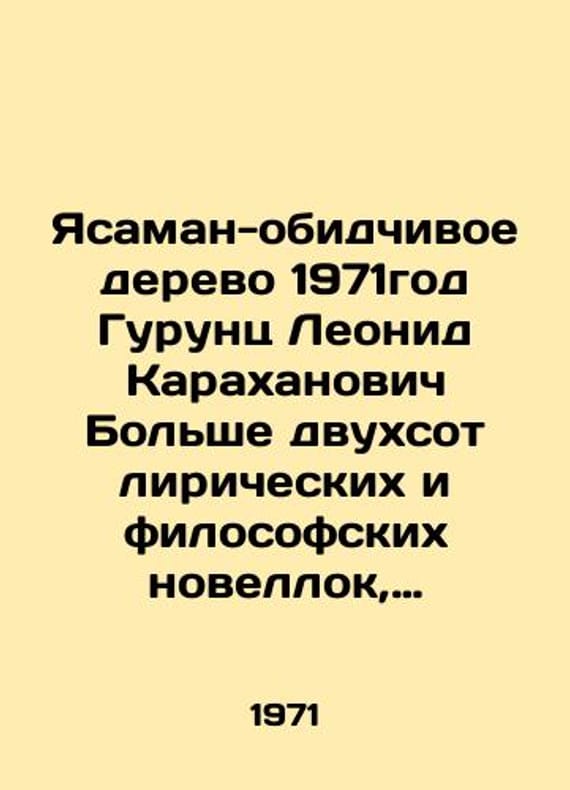 Yasaman-offending tree 1971 Gurunts Leonid Karakhanovich More than two hundred lyrical and philosophical novelties, sometimes reaching in degree of figuration, excitement level of poem in prose, parables, fable, aphorisms comprise L. Gurunts-offending tree collection/Yasaman-obidchivoe derevo 1971god Gurunts Leonid Karakhanovich Bolshe dvukhsot liricheskikh i filosofskikh novellok, poroyu dostigayushchikh po stepeni obraznosti, vzvolnovannosti urovnya stikhotvoreniya v proze, pritchey, pobasenok, aforizmov sostavlyayut sbornik L.Guruntsa Yasaman-obidchivoe derevo. Sbornik prednaznachen dlya shirokogo kruga chitateley. Yasaman-offending tree 1971 Gurunts Leonid Karakhanovich More than two hundred lyrical and philosophical novelties, sometimes reaching in degree of figuration, excitement level of poem in prose, parables, fable, aphorisms comprise L. Gurunts-offending tree collection. We have thousands of titles and often several copies of each title may be available. Please feel free to contact us for a detailed description of the copies available. SKUbd-5ad7488d320d9e21.
