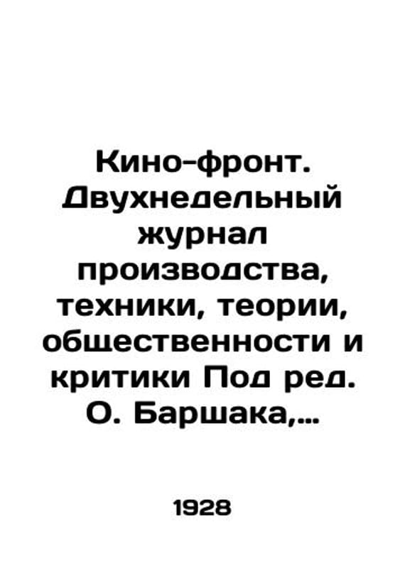 Film Front. A two-week journal of production, technique, theory, public opinion and criticism Edited by O. Barshak, V. Kirshon, M. Nikanorov, S. Eisenstein and K. Yukov. 1928. # 2./Kino-front. Dvukhnedelnyy zhurnal proizvodstva, tekhniki, teorii, obshchestvennosti i kritiki Pod red. O. Barshaka, V. Kirshona, M. Nikanorova, S. Eyzenshteyna i K. Yukova. 1928. # 2. Film Front. Two-week journal of production, technique, theory, public opinion and criticism Under the editorship of O. Barshak, V. Kirshon, M. Nikanorov, S. Eisenstein and K. Yukov. 1928. # 2. Moscow: Teakinprint, 1928. 32 SKUbd-5b46135b0d047a1a.We have thousands of titles and often several copies of each title may be available. Please feel free to contact us for a detailed description of the copies available. The delivery of this book might be delayed beyond the usual time due to extended processing and preparation before shipment, and faster shipping options are not offered. Please inform us if you need the order by a certain date or have a deadline.SKUbd-5b46135b0d047a1a