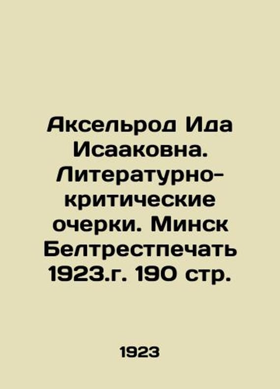 Axelrod Ida Isaakovna. Literary and Critical Essays. Minsk Beltrust Press, 1923.190 pp./Akselrod Ida Isaakovna. Literaturno-kriticheskie ocherki. Minsk Beltrestpechat 1923.g. 190 str. Axelrod Ida Isaakovna. Literary and Critical Essays. Minsk Beltrust Press, 1923.190 pp. We have thousands of titles and often several copies of each title may be available. Please feel free to contact us for a detailed description of the copies available. SKUbd-5b61bfc88b12df7f.