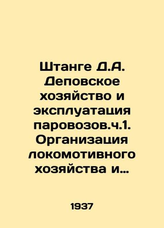 "Shtange D.A. Depov farm and operation of steam locomotives. Part 1. Organization of locomotives and operation of locomotives. 1937. NKPS as a stable textbook for railway transport bushes by Prof. D. A. Shtange; NKPS/Shtange D.A. Depovskoe khozyaystvo i ekspluatatsiya parovozov.ch.1. Organizatsiya lokomotivnogo khozyaystva i ekspluatatsiya parovozov.1937. Utv. TsUUZ NKPS v kachestve stabilnogo uchebnika dlya vtuzov zh.-d. transporta prof. D. A. Shtange; NKPS. Tsentr. upr. ucheb. zavedeniyami. Organizatsiya lokomotivnogo khrozyaystva i ekspluatatsiya parovozov 26x18 sm. In the first part, the author describes the organization and operation of steam locomotives, outlines methods for calculating the steam locomotive fleet, determining repair work, calculating the staff of workers and employees, and calculating production.We have thousands of titles and often several copies of each title may be available. Please feel free to contact us for a detailed description of the copies available. SKUbd-5c68deab959d4460."
