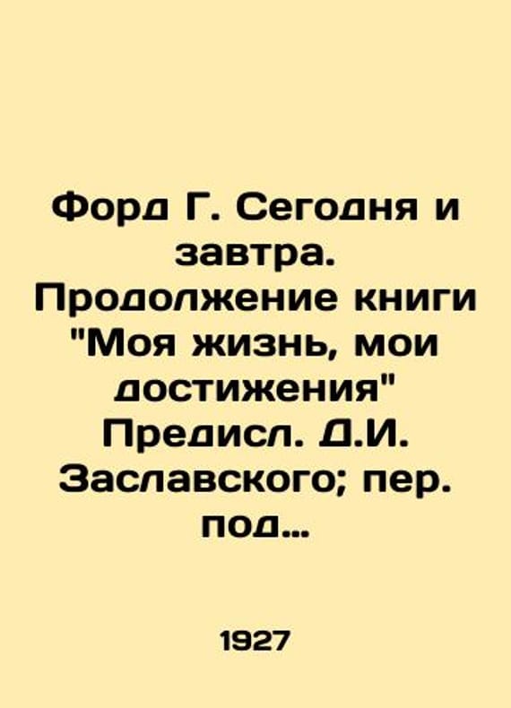 "Ford G. Today and Tomorrow. Continuation of the book My Life, My Achievements by D.I. Zaslavsky; edited by Eng. I.B. Mandelstam./Ford G. Segodnya i zavtra. Prodolzhenie knigi Moya zhizn, moi dostizheniya Predisl. D.I. Zaslavskogo; per. pod red. inzh. I.B. Mandelshtama. Ford G. Today and Tomorrow. Continuation of the book My Life, My Achievements by D.I. Zaslavsky; edited by Eng. I.B. Mandelshtam. L.: Time, 1927. 285, 2. We have thousands of titles and often several copies of each title may be available. Please feel free to contact us for a detailed description of the copies available. SKUbd-5c8f122fcd8a57ec."