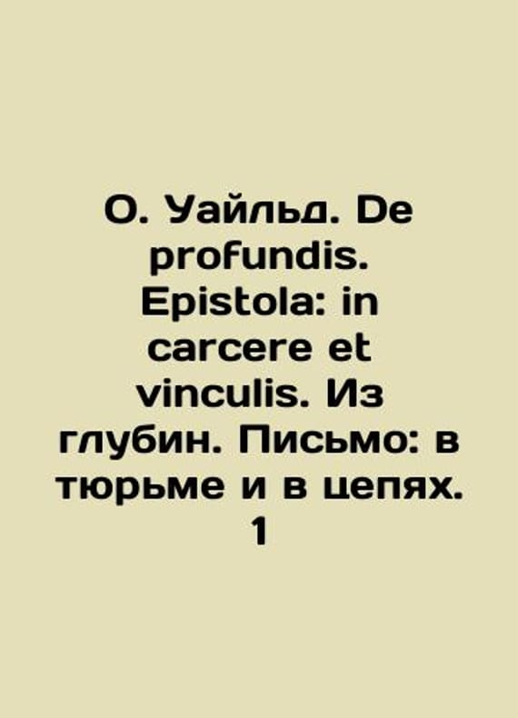 O. Wilde. De profundis. Epistola: in carcere et vinculis. From the depths. Letter: in prison and in chains. 1/O. Uayld. De profundis. Epistola: in carcere et vinculis. Iz glubin. Pismo: v tyurme i v tsepyakh. 1 O. Wilde. De profundis. Epistola: in carcere et vinculis. From the depths. Letter: in prison and in chains. We have thousands of titles and often several copies of each title may be available. Please feel free to contact us for a detailed description of the copies available. SKUbd-5cb23d8fcd8f2ae3.