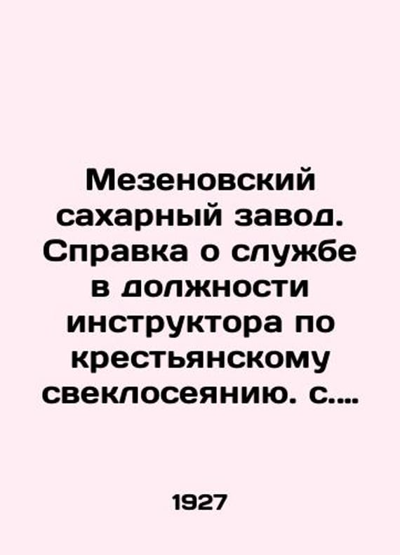 Mezenovsk sugar plant. Certificate of service as an instructor in peasant beet planting. Mezenovka village, Sumy district, 1927./Mezenovskiy sakharnyy zavod. Spravka o sluzhbe v dolzhnosti instruktora po krestyanskomu svekloseyaniyu. s. Mezenovka, Sumskiy okrug, 1927 g. Mezenovsk sugar plant. Certificate of service as an instructor in peasant beet planting. Mezenovka village, Sumy district, 1927.We have thousands of titles and often several copies of each title may be available. Please feel free to contact us for a detailed description of the copies available. SKUbd-5cbd359539047a68.