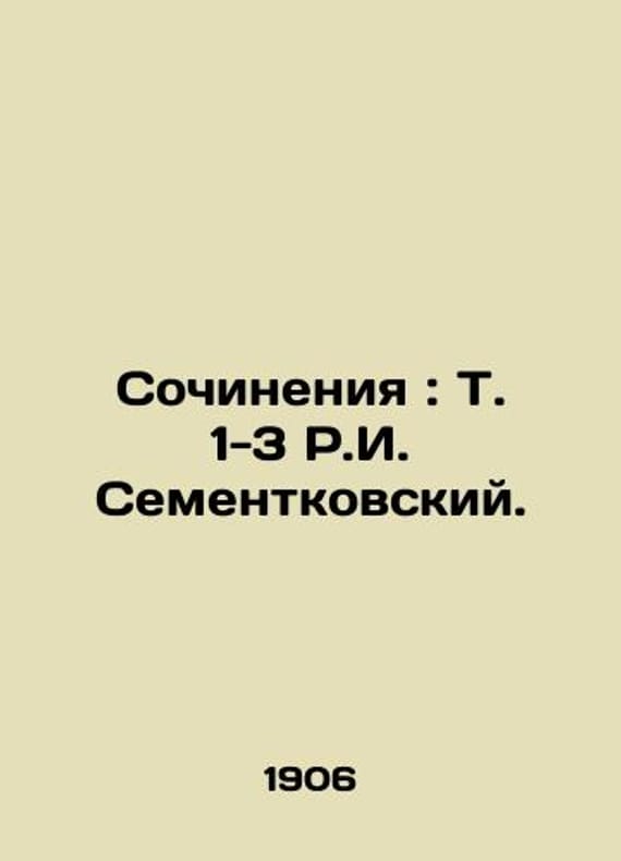 "Works: Vol. 1-3 R.I. Sementkovsky./Sochineniya: T. 1-3 R.I. Sementkovskiy. Works: Vol. 1-3 R.I. Sementkovsky - St. Petersburg: A.F. Marx, 1906.-3 vol.;.We have thousands of titles and often several copies of each title may be available. Please feel free to contact us for a detailed description of the copies available. SKUbd-5d91c7a6fa4e60b6."
