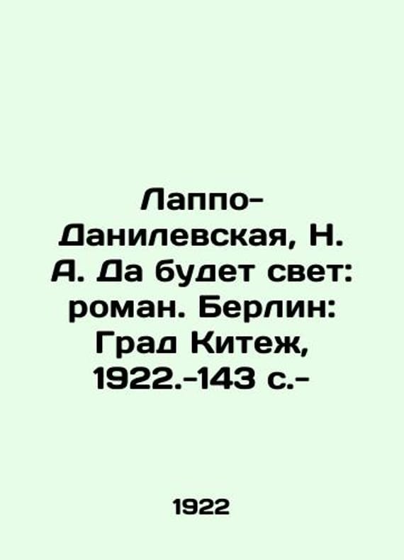 Lappo-Danilevskaya, N. A. Let there be light: novel. Berlin: City of Kitezh, 1922.-143 pp. -/Lappo-Danilevskaya, N. A. Da budet svet: roman. Berlin: Grad Kitezh, 1922.-143 s.- Lappo-Danilevskaya, N. A. Let there be light: novel. Berlin: City of Kitezh, 1922.-143 pp. -. We have thousands of titles and often several copies of each title may be available. Please feel free to contact us for a detailed description of the copies available. SKUbd-5e1f4001528459e7.
