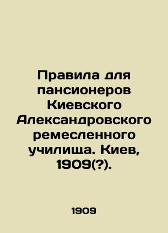 Rules for Guesthouses of Kyiv Aleksandrovsky Crafts School. Kyiv, 1909 (?)./Pravila dlya pansionerov Kievskogo Aleksandrovskogo remeslennogo uchilishcha. Kiev, 1909(?). Rules for Guesthouses of Kyiv Aleksandrovsky Crafts School. Kyiv, 1909 (?). We have thousands of titles and often several copies of each title may be available. Please feel free to contact us for a detailed description of the copies available. SKUbd-5e3a4bbe651d0172.