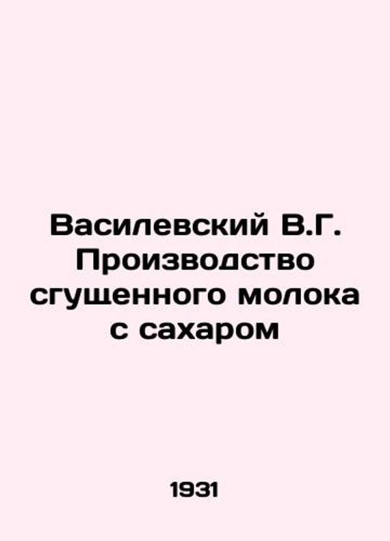 "Vasilevsky V.G. Production of condensed milk with sugar/Vasilevskiy V.G. Proizvodstvo sgushchennogo moloka s sakharom Vasilevsky V.G. Production of condensed milk with sugar: With 27 images and diagrams in the text engineer V.G. Vasilevskiy.--Moscow; Leningrad: State Agricultural and Agricultural Publishing House of the RSFSR, 1931 (Moscow: Vorovsky Typo-Litogr) -145 SKUbd-5eafcd955ec6b0ac.We have thousands of titles and often several copies of each title may be available. Please feel free to contact us for a detailed description of the copies available. The delivery of this book might be delayed beyond the usual time due to extended processing and preparation before shipment, and faster shipping options are not offered. Please inform us if you need the order by a certain date or have a deadline.SKUbd-5eafcd955ec6b0ac"
