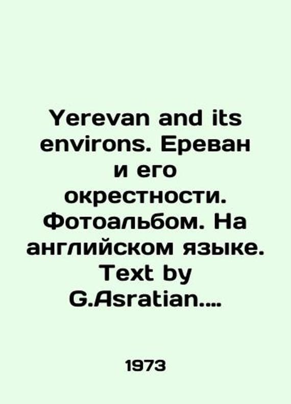 Yerevan and its surroundings. Yerevan and its environs. Photo album. In English. Text by G.Asratian. Photos by R.Mazelev./Yerevan and its environs. Erevan i ego okrestnosti. Fotoalbom.Na angliyskom yazyke. Text by G.Asratian. Photographs by R.Mazelev. Leningrad Aurora 1973, 136We have thousands of titles and often several copies of each title may be available. Please feel free to contact us for a detailed description of the copies available. SKUbd-5f0233e2756f38c6.