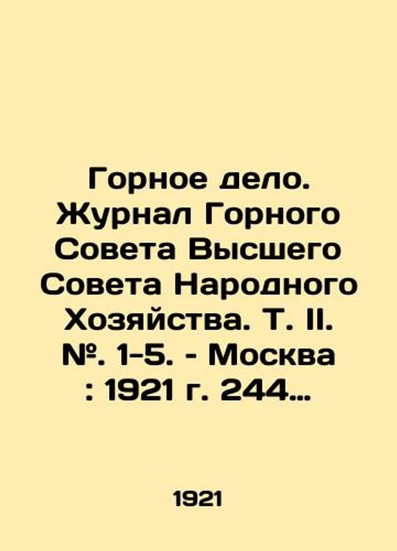 Mining. Journal of the Mining Council of the Supreme Council of the Peoples Economy. Vol. II. #. 1-5. Moscow: 1921. 244 p. 33,5x26 sm./Gornoe delo. Zhurnal Gornogo Soveta Vysshego Soveta Narodnogo Khozyaystva. T. II. #. 1-5. Moskva: 1921 g. 244 s. il. 33,5x26 sm. Mining. Journal of the Mining Council of the Supreme Council of the Peoples Economy. Vol. II. #. 1-5. Moscow: 1921. 244 p. 33,5x26 sm.We have thousands of titles and often several copies of each title may be available. Please feel free to contact us for a detailed description of the copies available. SKUbd-5f841a17d2ca305f.
