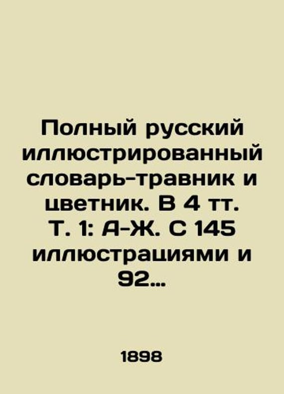 Complete Russian illustrated dictionary of herbs and flowers. In 4 volume Vol. 1: A-Z. With 145 illustrations and 92 drawings in colours, composed according to the latest botanical and medical works by the doctor E.N. Zalessova and O.V. Petrovskaya./Polnyy russkiy illyustrirovannyy slovar-travnik i tsvetnik. V 4 tt. T. 1: A-Zh. S 145 illyustratsiyami i 92 risunkami v kraskakh sost. po noveyshim botanicheskim i meditsinskim sochineniyam vrach. E.N. Zalesovoy i O.V. Petrovskoy. Complete Russian illustrated dictionary of herbs and flowers. In 4 tr., based on the latest botanical and medical works, the doctor E.N. Zalessova and O.V. Petrovskoy. St. Petersburg: A.A. Kaspari, 1898.-2, 368 p., 24 l. We have thousands of titles and often several copies of each title may be available. Please feel free to contact us for a detailed description of the copies available. SKUbd-5ff3b162663e0d88.