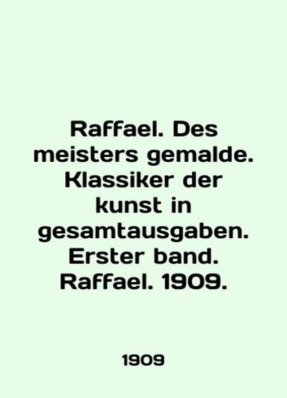 Raffel. Des meisters gemalde. Klassiker der kunst in gesamtausgaben. Erster band. Raffel. 1909./Raffael. Des meisters gemalde. Klassiker der kunst in gesamtausgaben. Erster band. Raffael. 1909. Raffel. Des meisters gemalde. Klassiker der kunst in gesamtausgaben. Erster band. Raffel. 1909. 298 c.il.We have thousands of titles and often several copies of each title may be available. Please feel free to contact us for a detailed description of the copies available. SKUbd-60518b802f2c680.