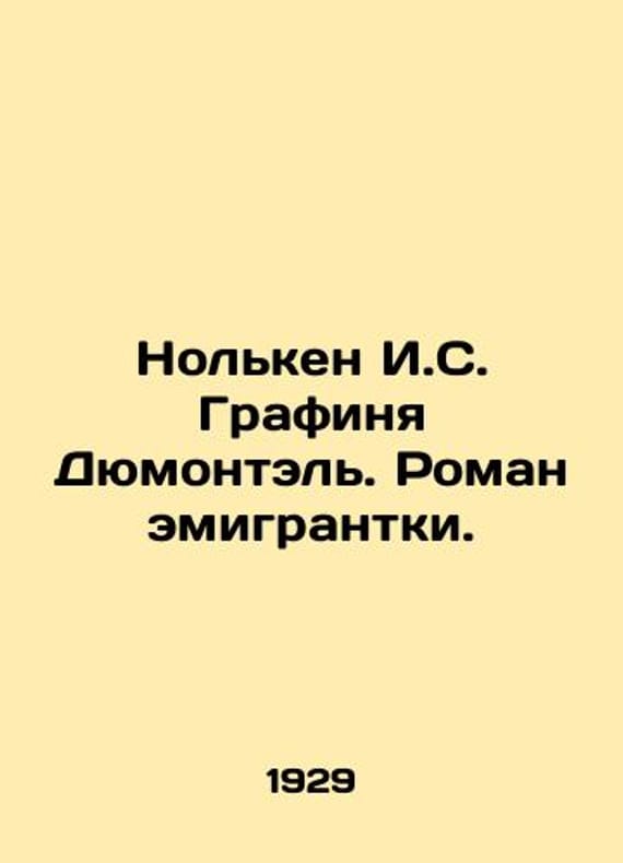 Nolken I.S. Countess Dumontel. A novel by an emigrant./Nolken I.S. Grafinya Dyumontel. Roman emigrantki. Nolken I.S. Countess Dumontel. A novel by an emigrant woman. Riga: A type of action in the Salamander case, 1929. 168, 4 p. We have thousands of titles and often several copies of each title may be available. Please feel free to contact us for a detailed description of the copies available. SKUbd-607a9b9b6e0201a2.