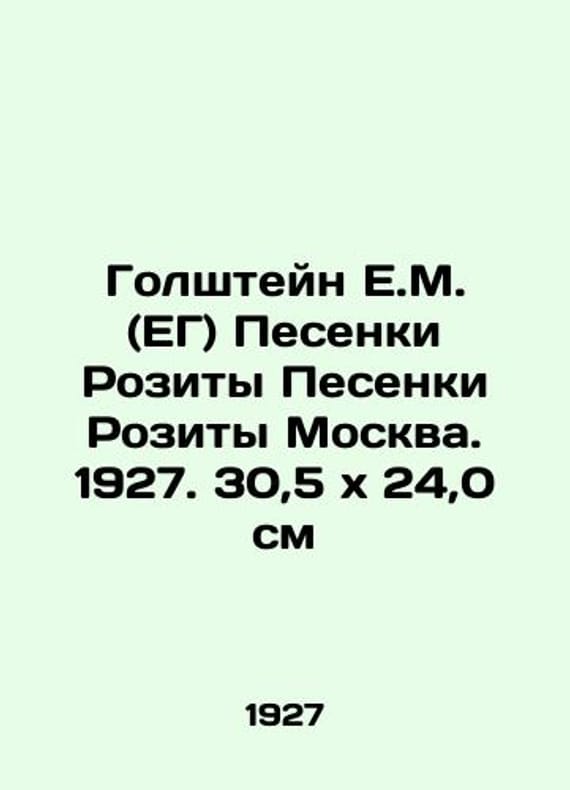 Golshtein E.M. (EG) Rosita Songs Rosita Songs Moscow. 1927. 30.5x24.0 cm/Golshteyn E.M. (EG) Pesenki Rozity Pesenki Rozity Moskva. 1927. 30,5x24,0 sm Golshtein E.M. (EG) Rosita Songs Rosita Songs Moscow. 1927. 30.5x24.0 sm.We have thousands of titles and often several copies of each title may be available. Please feel free to contact us for a detailed description of the copies available. SKUbd-61527717793a6aea.