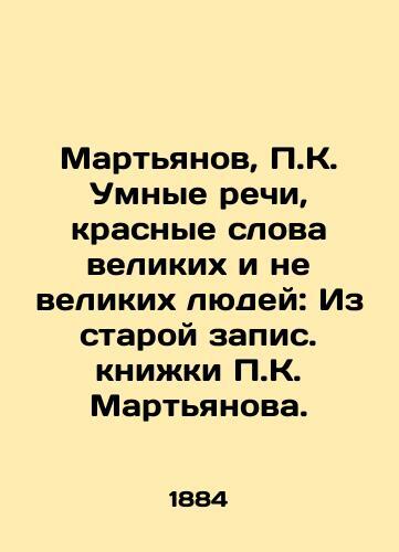 "Martyanov, K. Smart Speeches, Red Words of Great and Not Great Men: From the Old Book of K. Martyanov./Martyanov, K. Umnye rechi, krasnye slova velikikh i ne velikikh lyudey: Iz staroy zapis. knizhki K. Martyanova. Martyanov, K. Smart Speeches, Red Words of Great and Not Great Men: From the Old Book of K. Martyanov-St. Petersburg: Dr. M.A. Khan, 1884-XVI, 224 p.;. We have thousands of titles and often several copies of each title may be available. Please feel free to contact us for a detailed description of the copies available. SKUbd-61b1b1c90d910901."