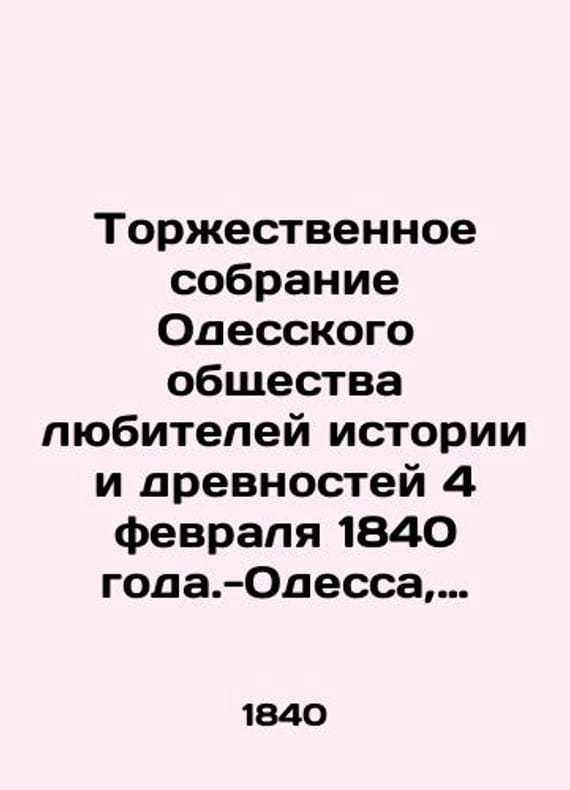 "Solemn Meeting of Odessa Society of History and Antiquities Amateurs on February 4, 1840 - Odessa, 1840.-6, 73 p.: end, east; 29x23 sm./Torzhestvennoe sobranie Odesskogo obshchestva lyubiteley istorii i drevnostey 4 fevralya 1840 goda.-Odessa, 1840.-6, 73 s.: konts., zast.; 29x23 sm. Issued in Odessa, rarity Odessa Society of History and Antiquities. Solemn meeting of Odessa Society of History and Antiquities Amateurs on February 4, 1840. -Odessa, 1840.-6, 73 p.: end, st.; 29x23 sm. We have thousands of titles and often several copies of each title may be available. Please feel free to contact us for a detailed description of the copies available. SKUbd-625927a74950037b."