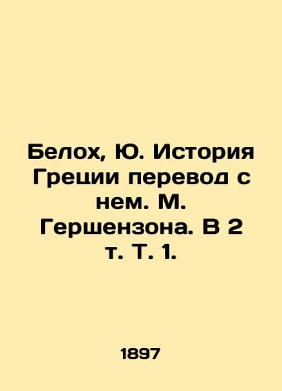 Belokh, Yu. History of Greece translated from it by M. Gershenzon. In 2 Vol. 1./Belokh, Yu. Istoriya Gretsii perevod s nem. M. Gershenzona. V 2 t. T. 1. Belokh, Yu. History of Greece translated from it. M. Gershenzon. In 2 Vol. 1. Moscow: 1897. We have thousands of titles and often several copies of each title may be available. Please feel free to contact us for a detailed description of the copies available. SKUbd-62d8f384a77da629.