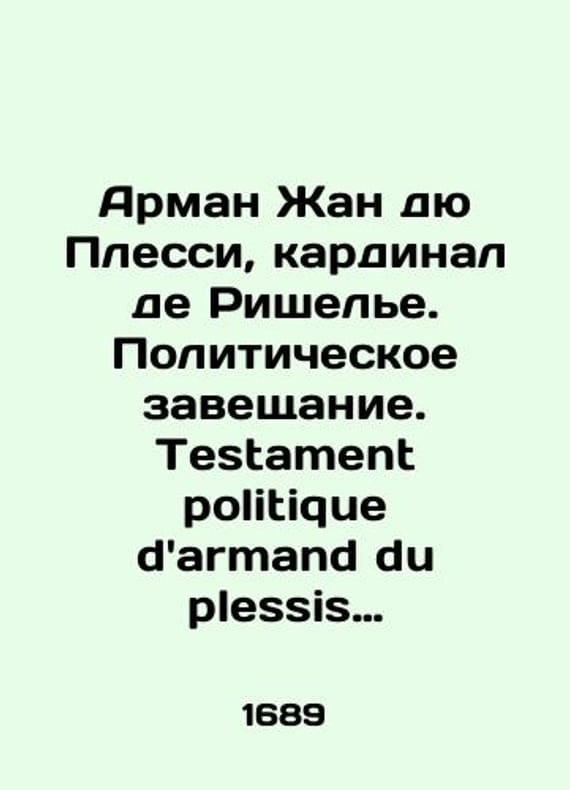 Armand Jean du Plessis, Cardinal de Richelieu. Testament politique darmand du plessis Cardinal duc de Richelieu. Amsterdam: Chez Henry Desbordes, 1689./Arman Zhan dyu Plessi, kardinal de Rishele. Politicheskoe zaveshchanie. Testament politique darmand du plessis cardinal duc de Richelieu. Amsterdam: Chez Henry Desbordes, 1689. Armand Jean du Plessis, Cardinal de Richelieu. Testament politique darmand du plessis Cardinal duc de Richelieu. Amsterdam: Chez Henry Desbordes, 1689.We have thousands of titles and often several copies of each title may be available. Please feel free to contact us for a detailed description of the copies available. SKUbd-62f46f049e804fc8.